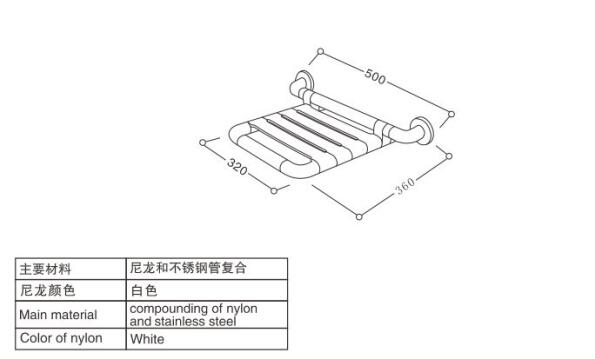 產(chǎn)品結(jié)構(gòu):抗菌尼龍無障礙扶手為彩色尼龍和不銹鋼管復(fù)合而成,其外層尼龍直徑為35*3.5mm,內(nèi)襯不銹鋼管直徑28*1.2mm復(fù)合而成。